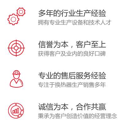 多年的換熱器行業(yè)研發(fā)生產(chǎn)經(jīng)驗(yàn),專(zhuān)業(yè)的生產(chǎn)設(shè)備,為每一批次產(chǎn)品,提供穩(wěn)定的質(zhì)量保證!